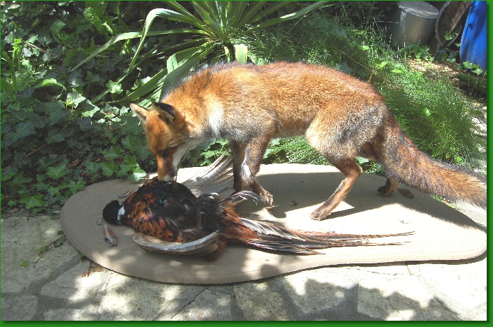 In opdracht van een klant, voorstellend : Vos met prooi (fazant)